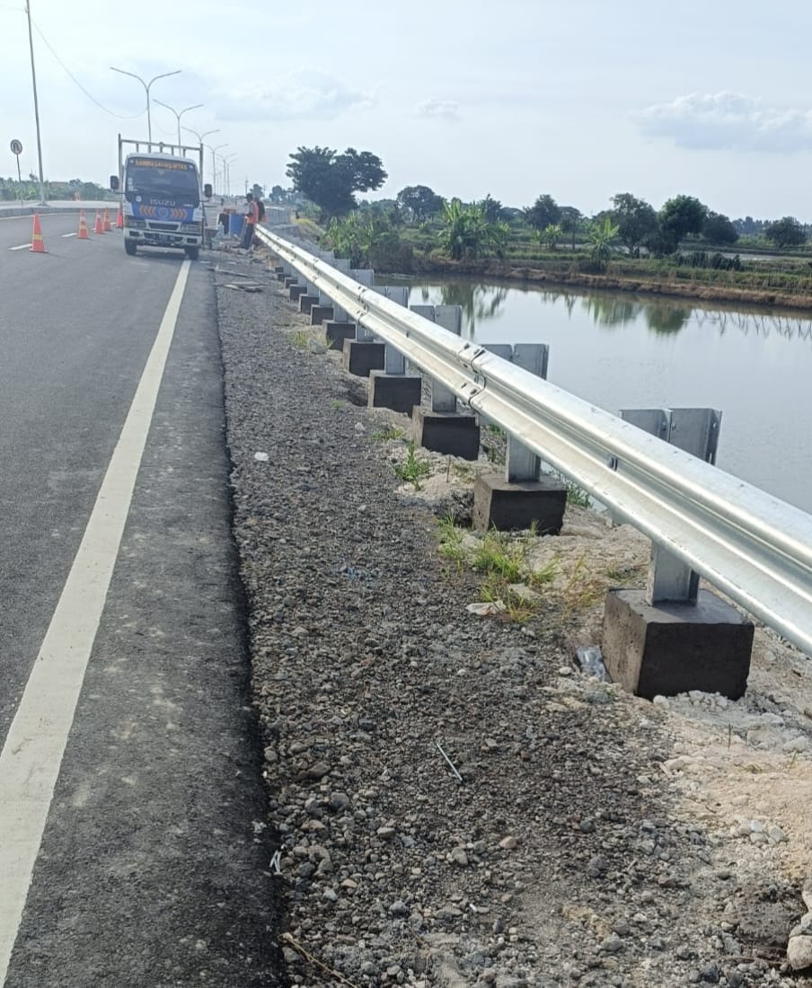 Ketersediaan komponen Guard Rail (Beam, Post, End Section, Block) terjamin untuk kebutuhan proyek besar dan mendesak.